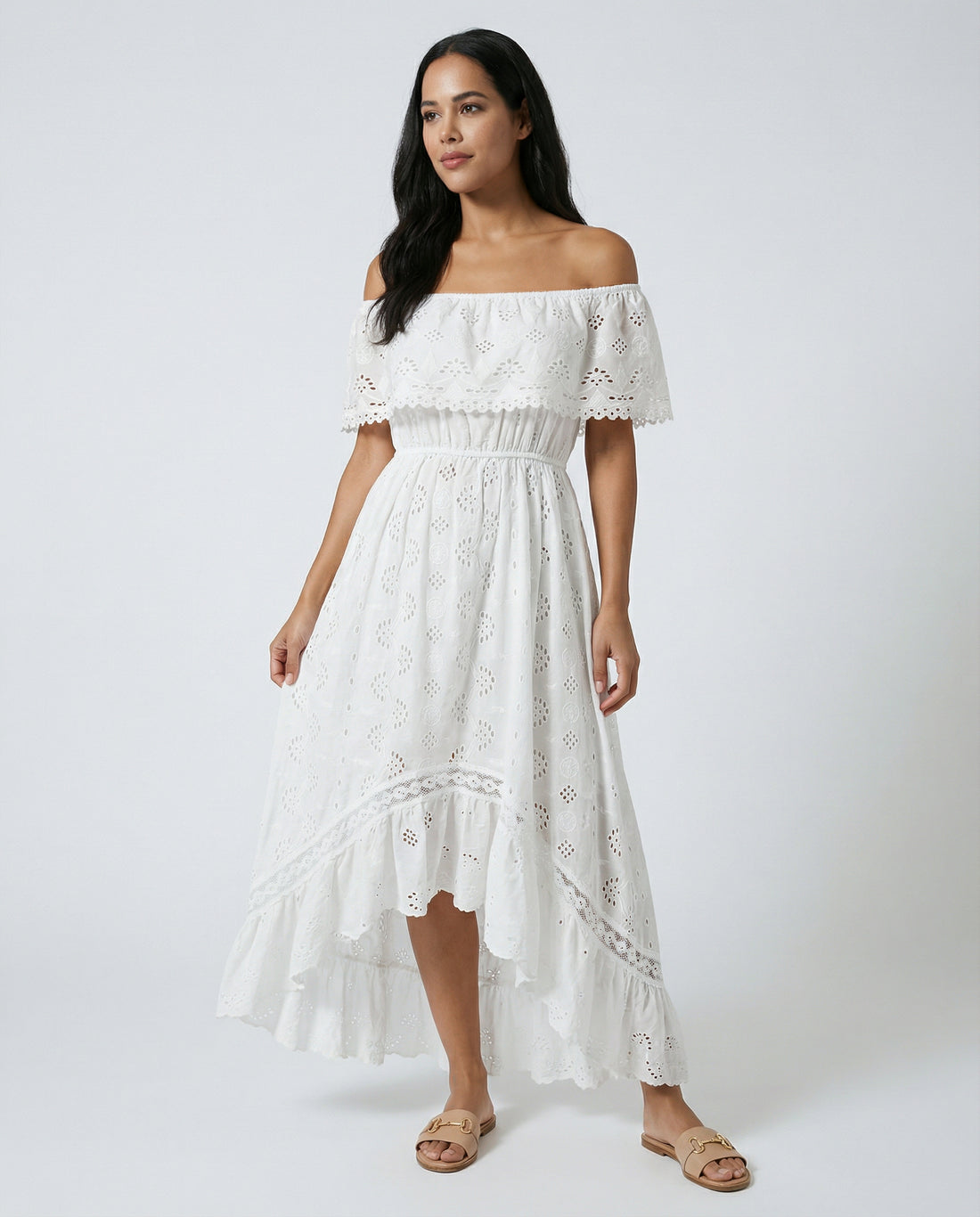 Ivory Breeze Eyelet Off-Shoulder Dress