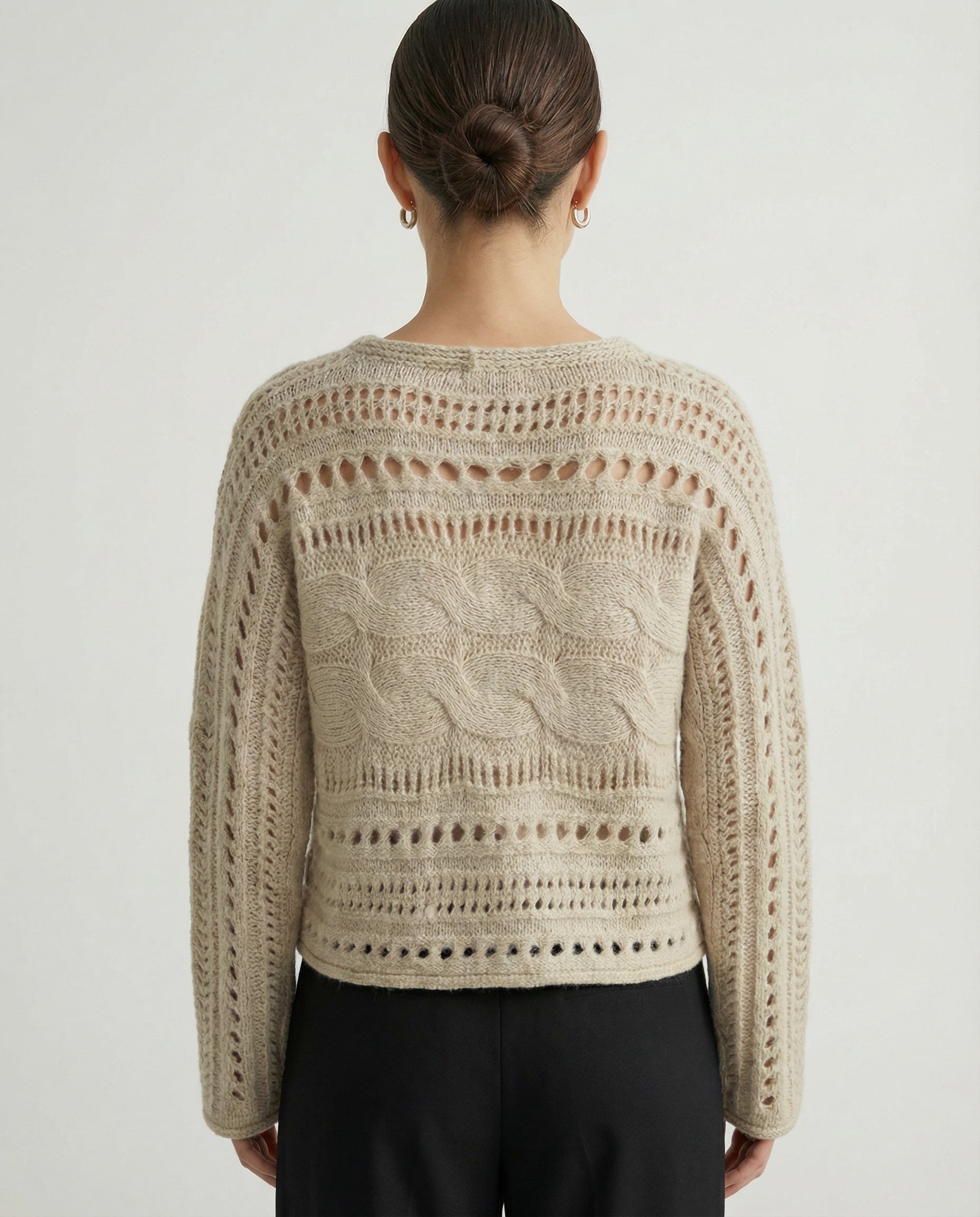 Features: Hollow-out cable pattern, boat neck shape, breathable texture.