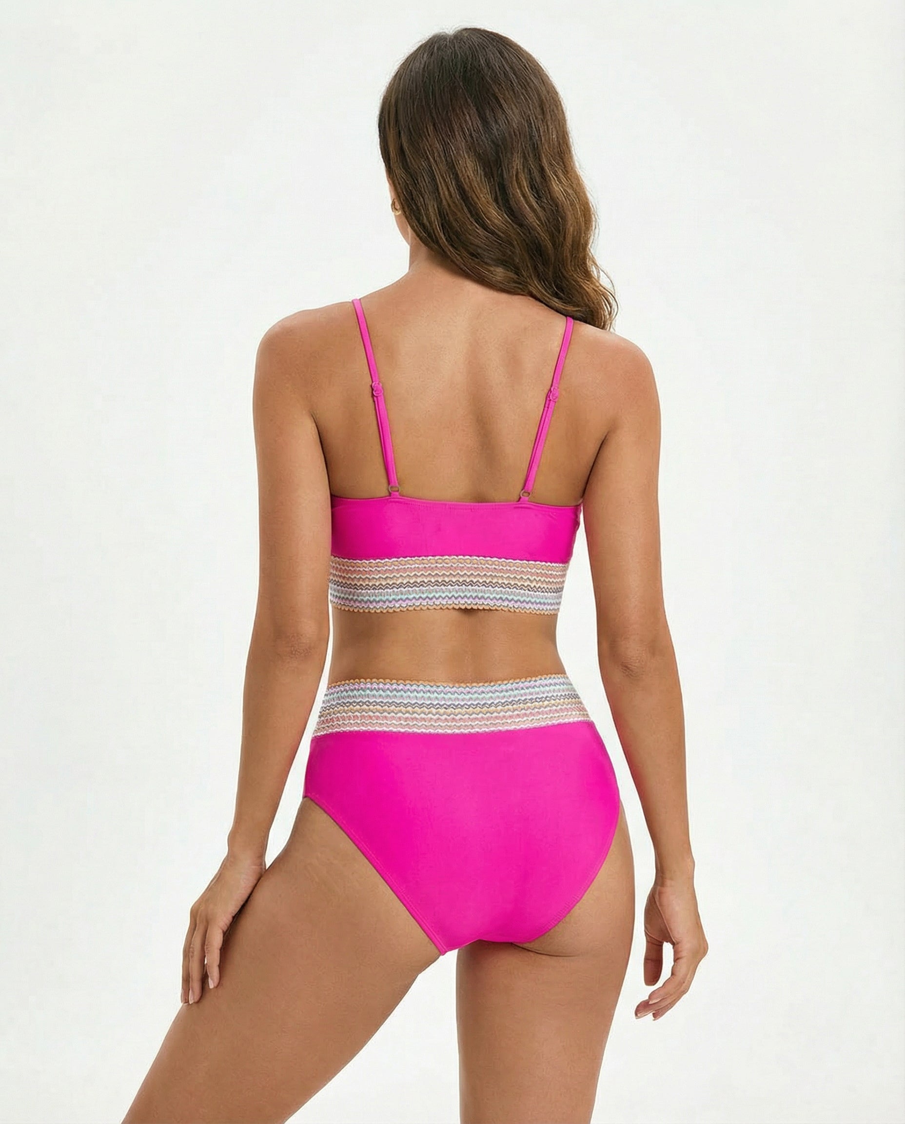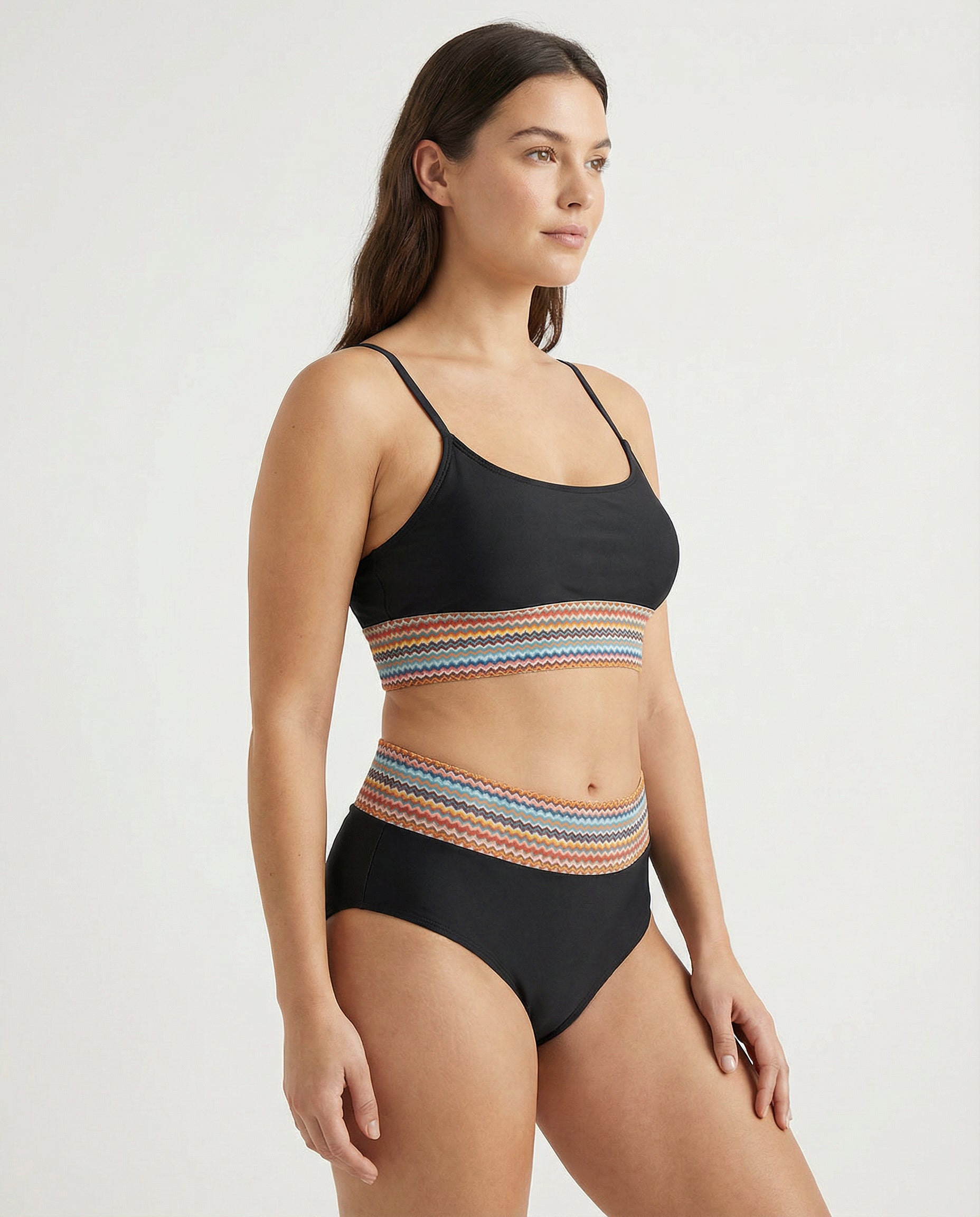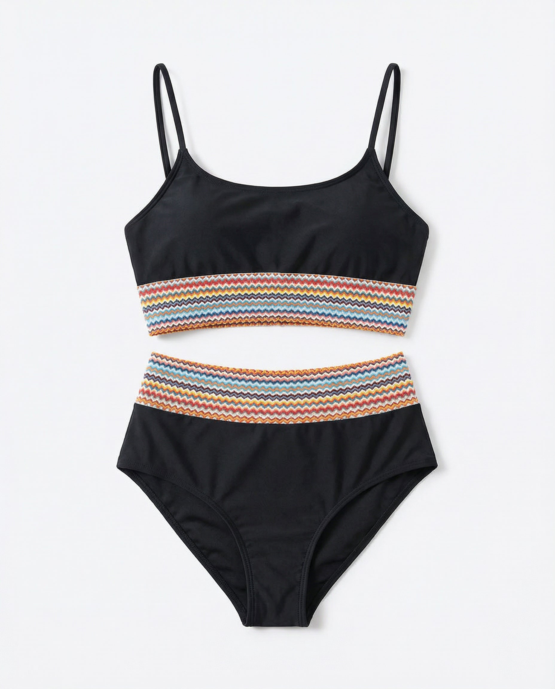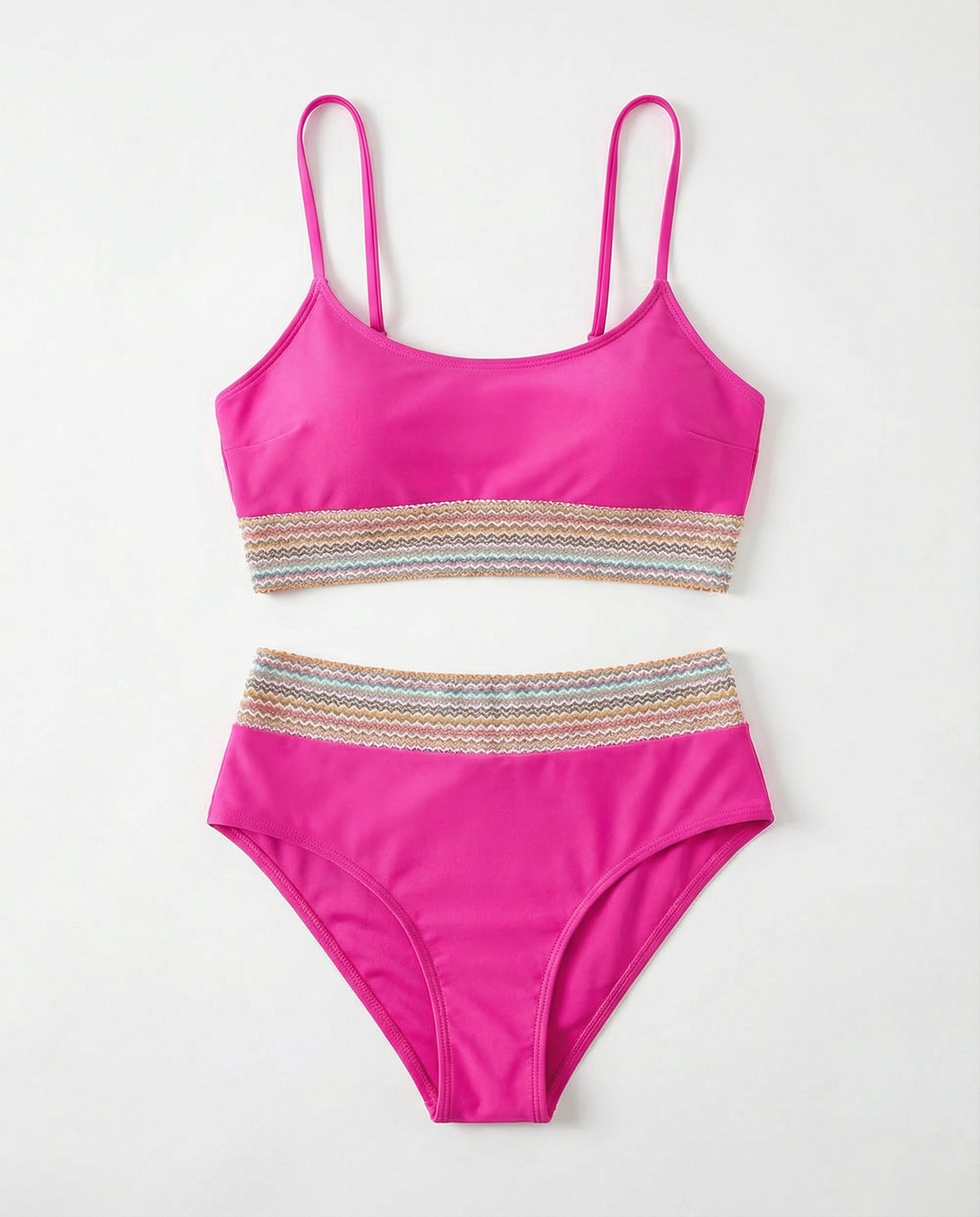 Construction: Stretch two-piece swim set designed for balanced coverage and mobility.