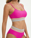 Célivine Women’s Scoop Neck Spaghetti Strap Two-Piece Swim Set features a clean scoop neckline with slim strap support and a flexible stretch swim construction for effortless structure. The balanced two-piece design offers smooth contour and reliable recovery while maintaining a sleek surface finish. Designed for secure, wire-free support with removable padding, this set delivers modern swim simplicity with dependable comfort.