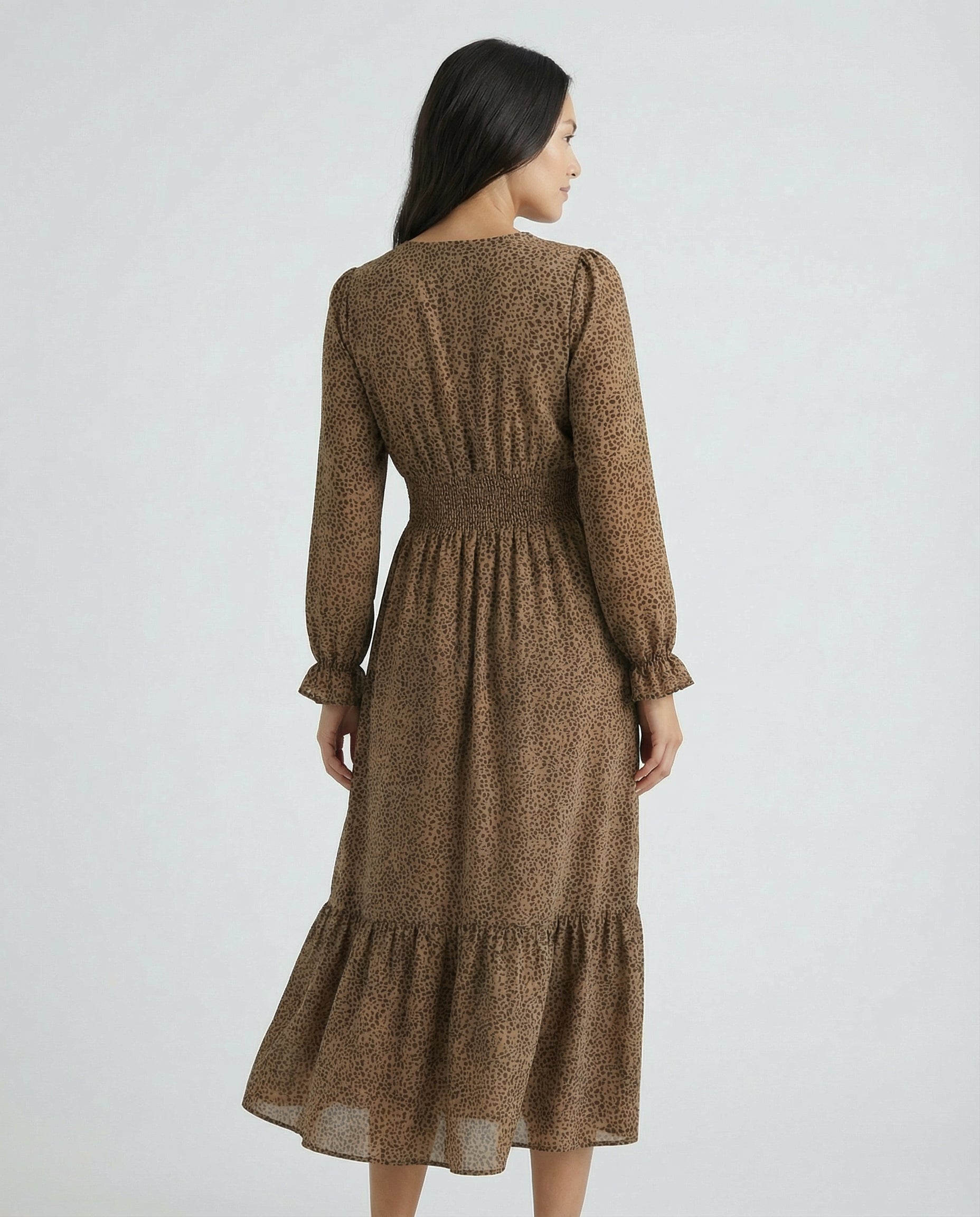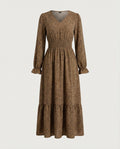 Célivine Smocked Waist Long Sleeve Tiered Maxi Dress features a lightweight woven fabric with a smocked waist section and tiered full-length skirt for balanced structure and soft movement. The long sleeves and flowing silhouette support versatile day-to-evening styling while maintaining comfortable wear.